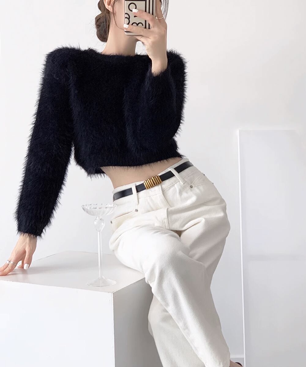 柔らかいニット女子 ふわふわ暖かニット クロップド丈ニット