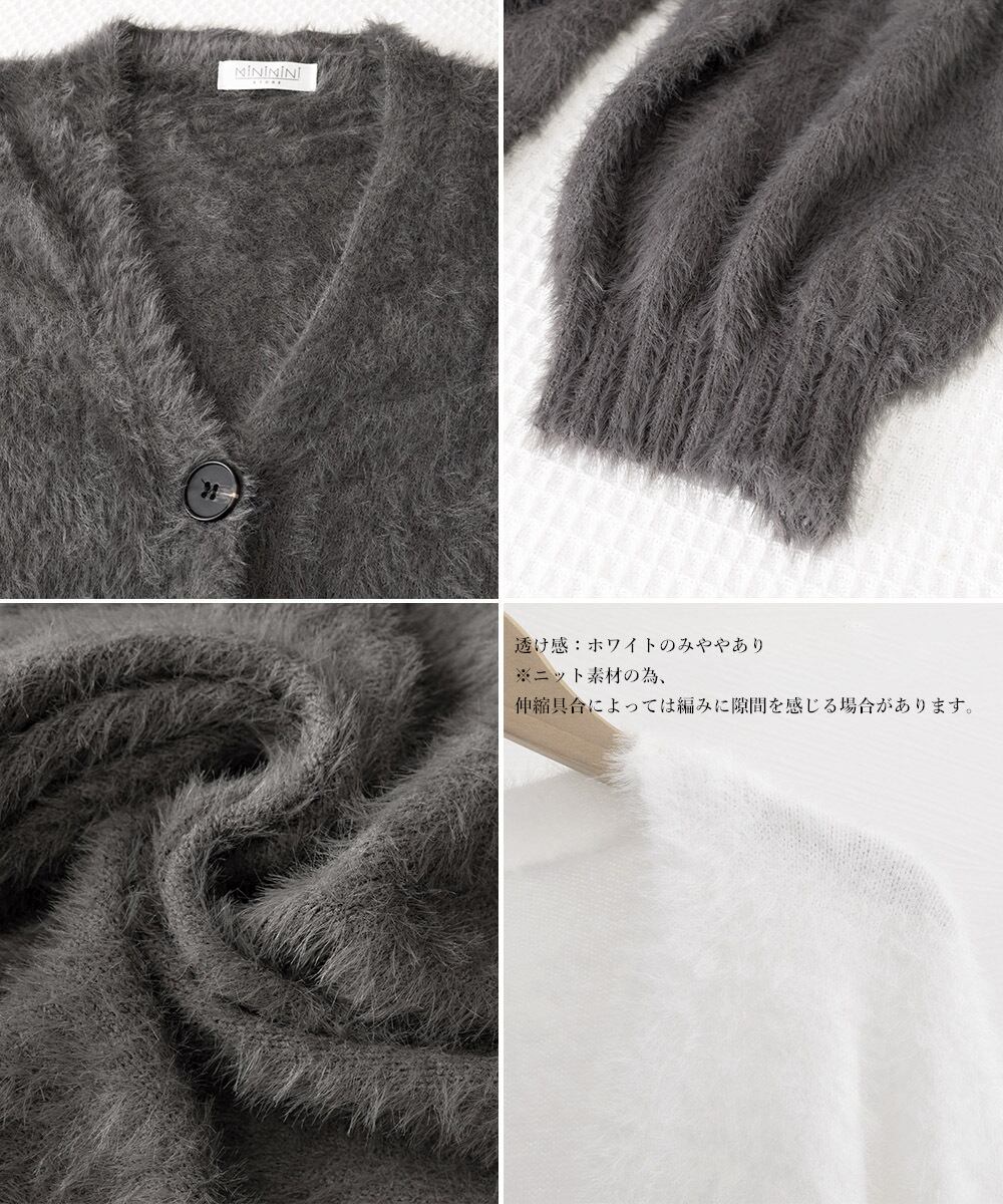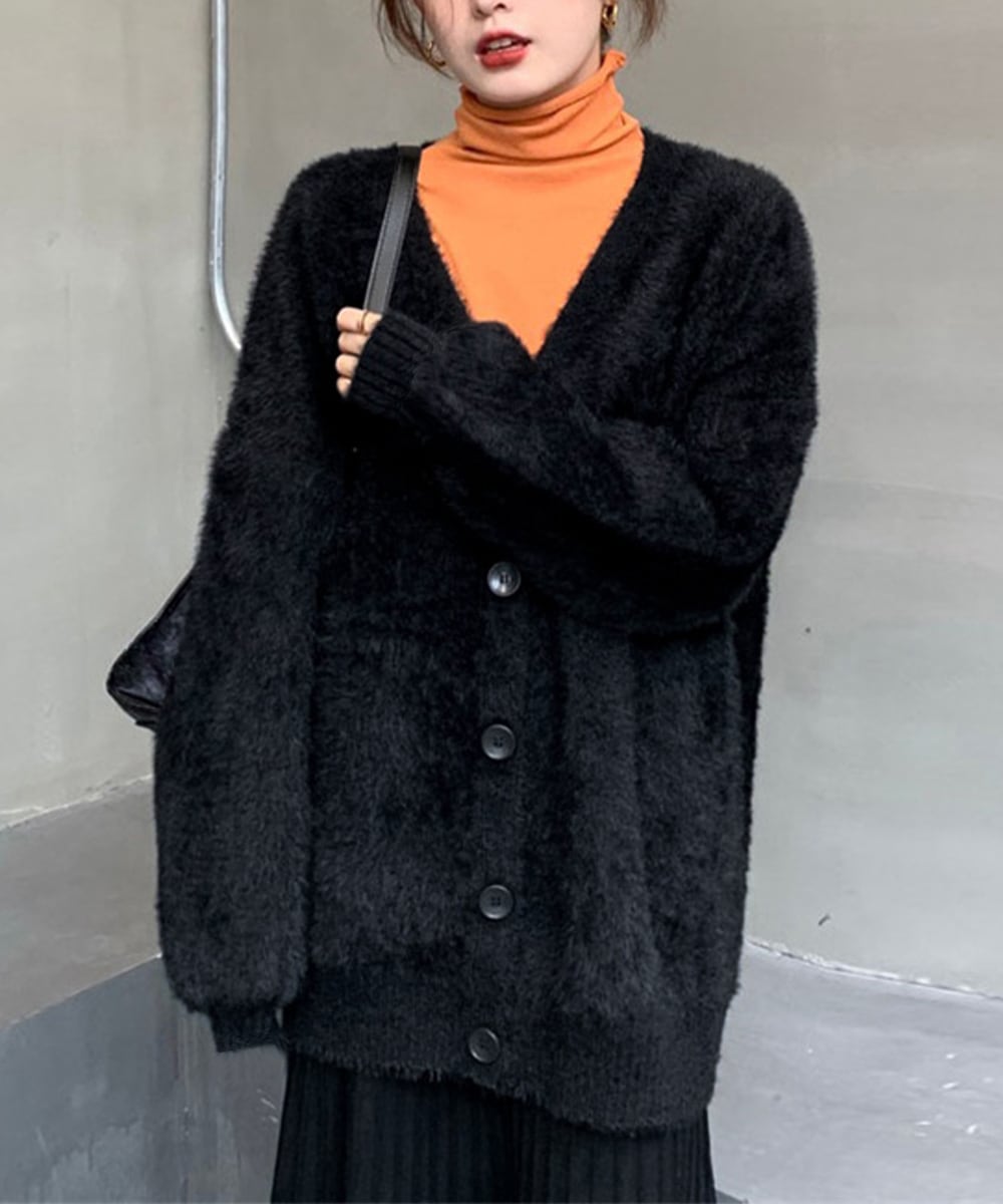 ルーズに羽織ってリラックス感のある着こなしを楽しめるシャギーニットカーディガン