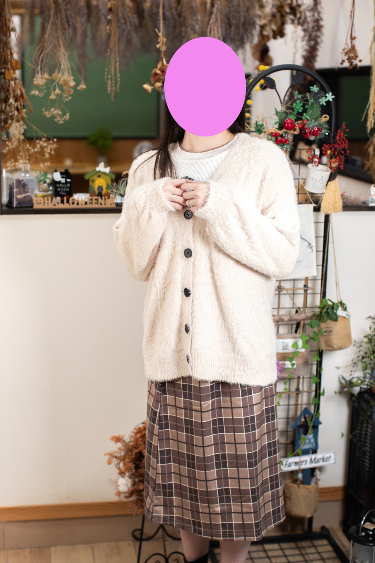 落ち着いたブラウンを基調としたチェック柄が可愛いミディ丈スカート。